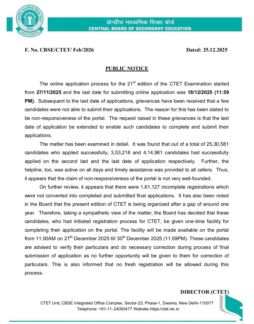 N/A For more complete information, please read the CTET February Notification 2025. |